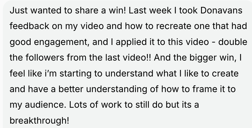 I built an audience of over 200k+ people organically. I doubled my revenue working a fraction of the hours. Million dollar business owners started hiring me to rebuild their brand voice. People started paying $750 for a single hour with me and saying one sentence was worth the entire investment. A membership I'd been running for $197 a month started producing results so dramatic that my own members told me I was charging too little. I secured partnerships with top brands like Adobe, Meta, and Instagram.